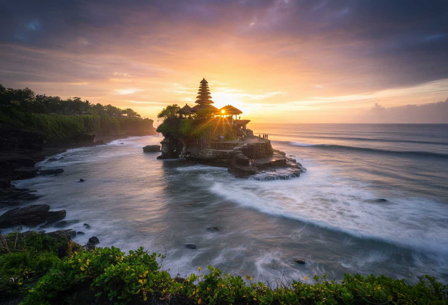 Experience Bali's trendy side with a day exploring Canggu and Seminyak. Start with smoothie bowls and acai at a hip Canggu café like KYND Community or Shady Shack. Visit the iconic Tanah Lot Temple perched on its rocky islet. Browse Seminyak's boutique shops and end your day with sunset cocktails and beach club vibes at Potato Head or La Brisa.